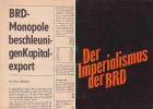 "Gesamtdarstellung des deutschen Imperialismus" 2. Titel. - Imperialismus heute. Der staatsmonopolistische Kapitalismus in Westdeutschland, Dietz Verlag Berlin, 5. Auflage/1968, 823 Seiten, Leinen-Einband mit an den Rändern abgenutztem O. Schutzumschlag), Papier etwas lichtrandig, sonst gut erhalten.